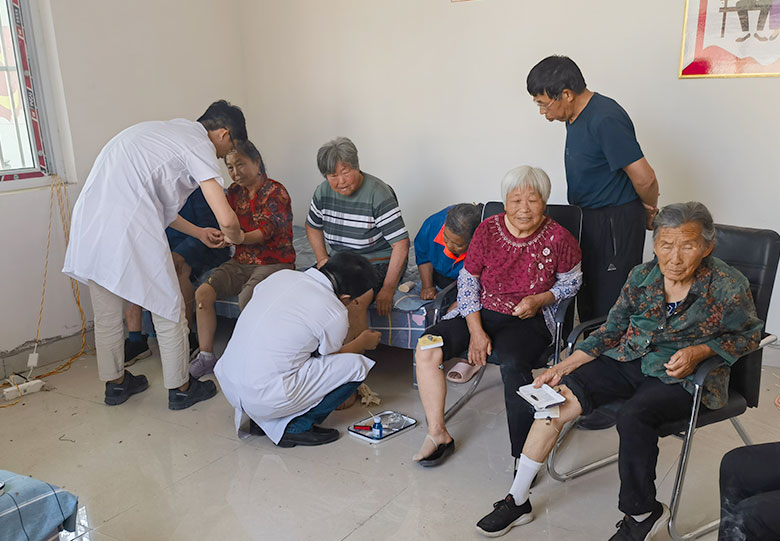 在西湖镇赵王楼村党群服务站广场,史梅代表学校向村委会赠送电磁波治疗器和中药膏贴等一批医药物资。由山东省名中医药专家景政副教授领衔,高华伟副教授,曹利超老师,分组为乡亲们开展中医义诊。专家们通过问诊把脉、体质辨证和扎针送药,为来访患者治疗病痛,神奇的中医疗效,引得群众连连称赞。义诊期间,在阳谷县西湖镇党委副书记周磊和王文新陪同下,史梅慰问因伤在家的村党支部书记,参观由王文新牵头为赵王楼村建设的村卫生室和光伏发电设施。